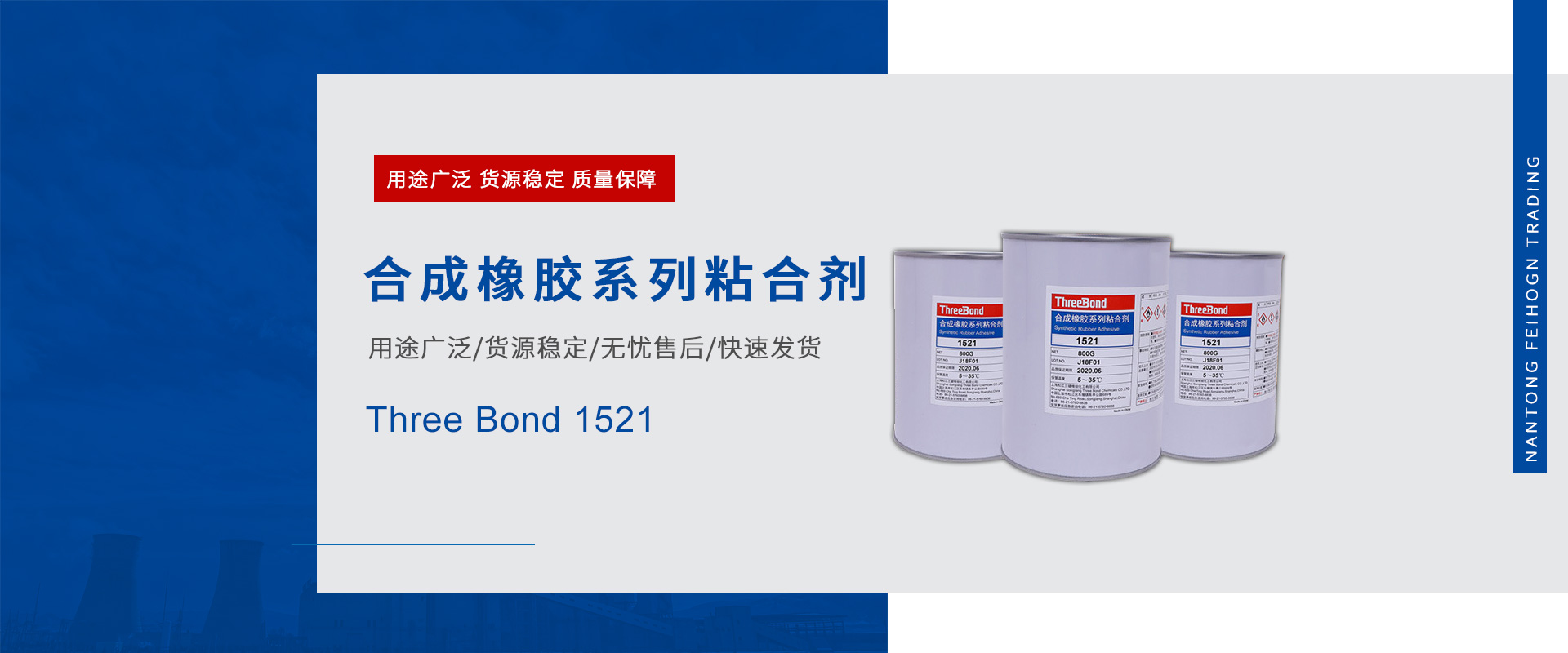 南通飛鴻商貿(mào)專營各大品牌膠粘劑,密封劑。主營樂泰、波士、天山、三鍵、富樂以及3M等知名品牌,為客戶提供多樣的服務(wù)、專業(yè)的技術(shù)支持和系統(tǒng)解決方案在江蘇地區(qū)經(jīng)營各類工業(yè)產(chǎn)品,其經(jīng)營范圍包括:螺紋鎖固密封膠系列,結(jié)構(gòu)粘接及平面密封膠系列,圓柱固持系列,金屬修補系列,耐磨耐腐蝕系列,表面清洗及銹蝕處理系列,地面防滑及修補系列,橡膠粘接及皮帶修補系列,減摩涂層及定位灌封系列,緊急修補系列,高溫密封修補系列,抗咬合潤滑劑系列,羅哥潤滑油系列等等,主要服務(wù)于汽車,工程機械,軌道交通,新能源,電子電器,船舶,冶金,航空航天,電力,醫(yī)療等諸多行業(yè)!